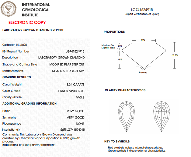 3.34 CT Pear Step Cut Lab Grown Diamond | VVS2 Clarity, Blue Color IGI Certified