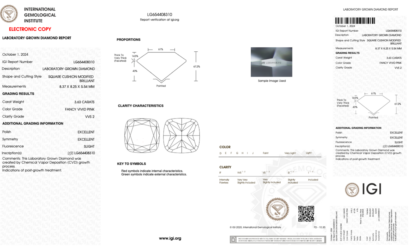 3.63 Carat Cushion Shape IGI Certified Lab Grown Fancy Pink Diamond VVS2 Clarity for Fine Jewelry