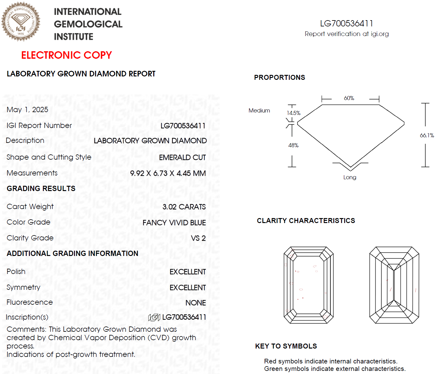 3 CT Blue Emerald Lab Grown Diamond for Necklace | Best For Anniversary Gift | IGI Certified Diamond