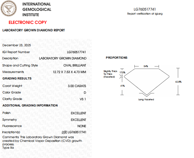 3 CT Oval Old Mine Cut Lab Grown Diamond for Engagement Ring or Custom Jewelry