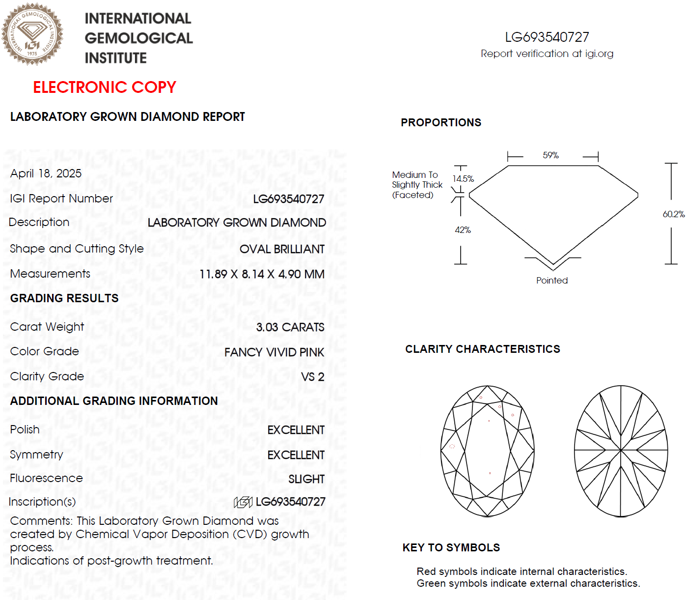 3 CT Pink Oval Lab Grown Diamond for Necklace | IGI Certified | Best for Earrings or Anniversary Gift | Gift for Wife