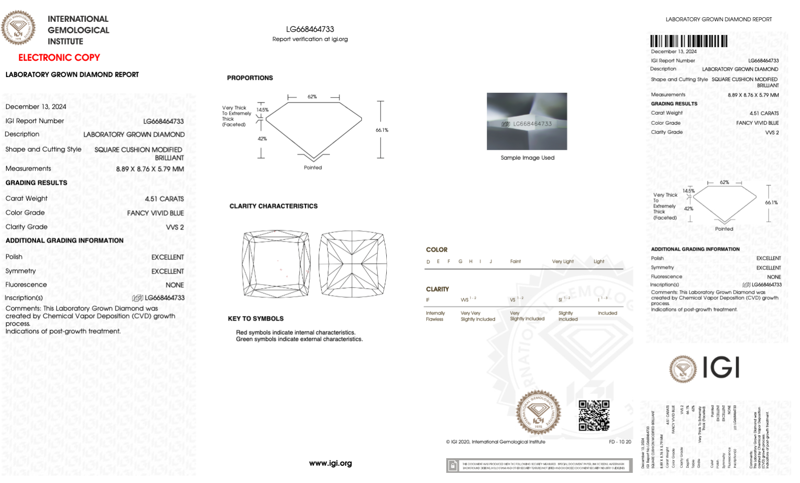 4.51 Carat Cushion Shape IGI Certified Lab Grown Fancy Blue Diamond VVS2 Clarity for Fine Jewelry