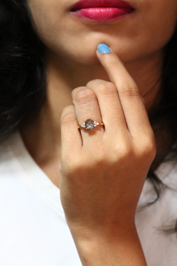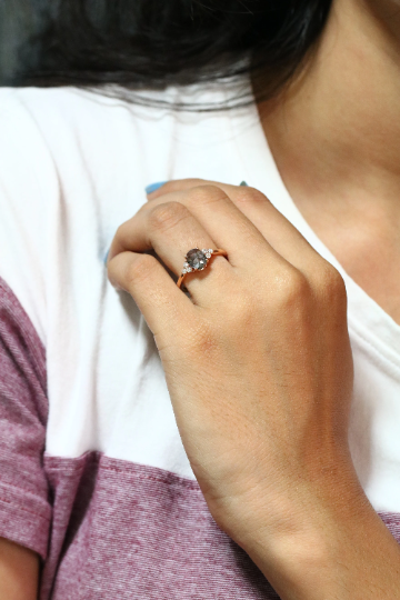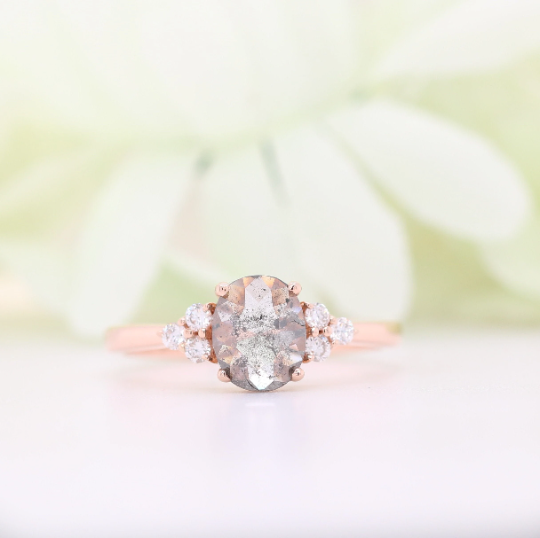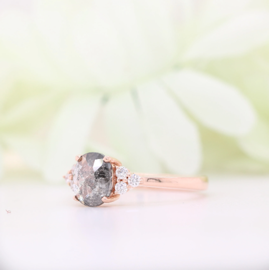 4 Prongs 14K Rose Gold Salt and Pepper Oval Diamond For Engagement Ring