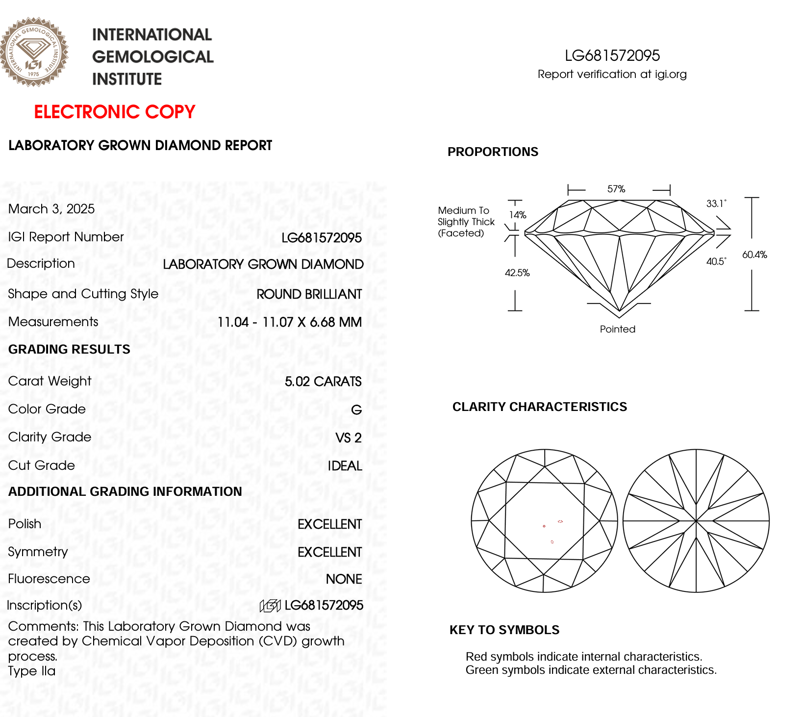 5.02ct Round Cut Lab Grown Diamond IGI Certified