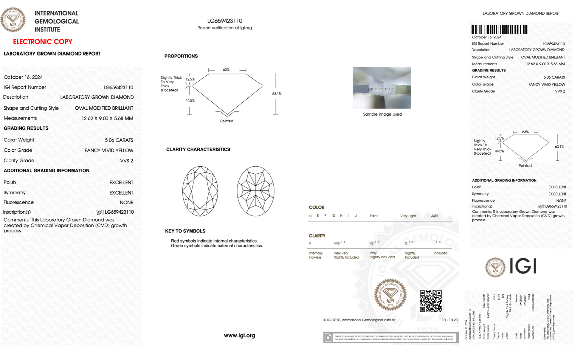 5.06 Carat IGI Certified Fancy Vivid Yellow Oval Lab Grown Diamond | VVS2 Clarity Loose Stone