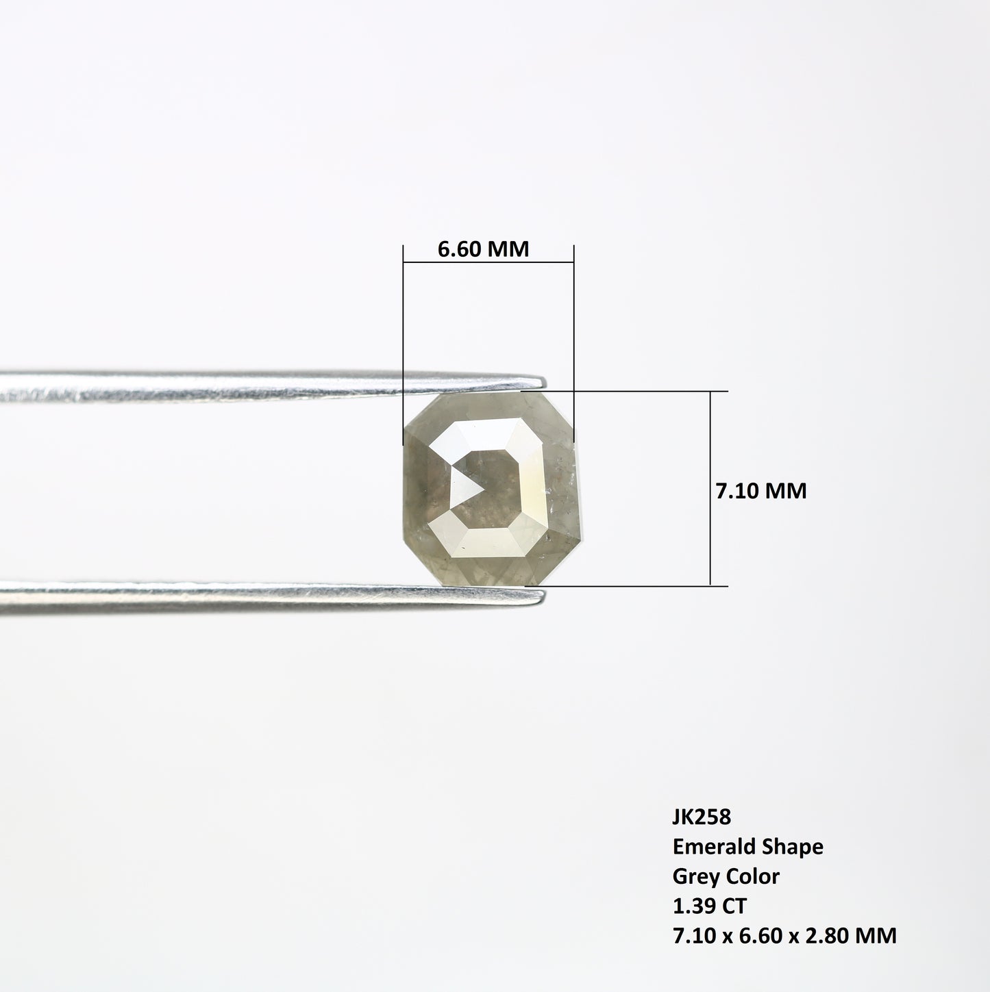 1.39 CT 7.10 MM Grey Emerald Shape Diamond For Engagement Ring