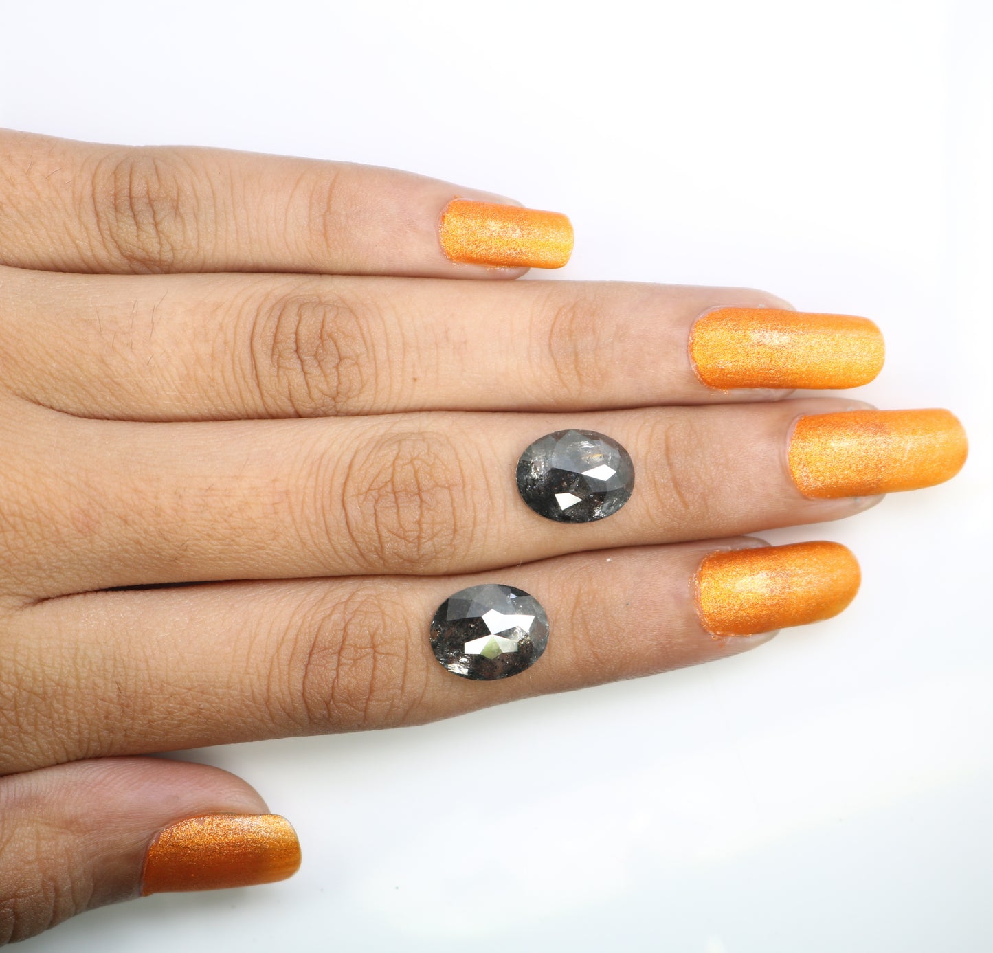 6.92 CT Oval Shape Salt And Pepper Pair Diamond For Engagement Ring
