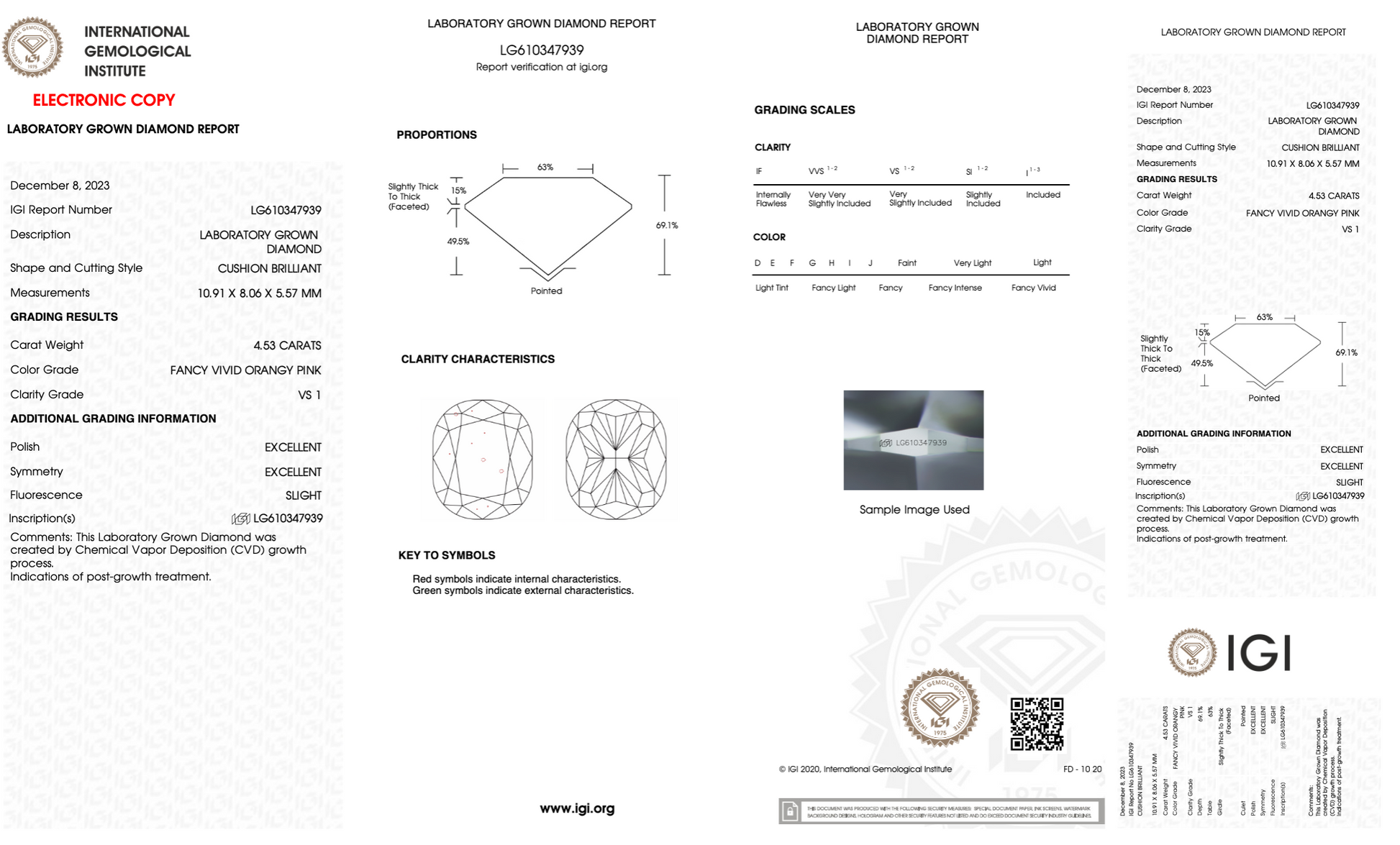 Fancy Vivid Orangy Pink Cushion Brilliant Cut Lab Grown Diamond | IGI Certified, Perfect for Engagement Rings